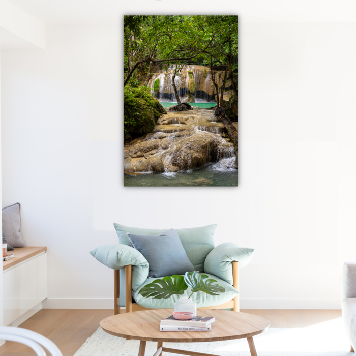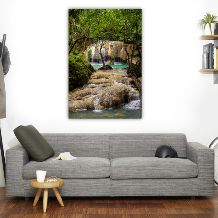 **PLEASE NOTE: THIS IMAGE IS IN A VERTICAL ORIENTATION** Located in West Thailand in the Kanchanaburi Province, Erawan National Park is home to one of the most popular falls in the country. The major attraction of the park is the 7-tiered Erawan Falls with emerald green ponds. There are also several impressive and long caves within the park, some of them deeper inside the park, few of them along the roads around the park. The park and the falls are named after the three-headed white elephant of Hindu mythology. The top tier of the falls is said to resemble an elephant head.